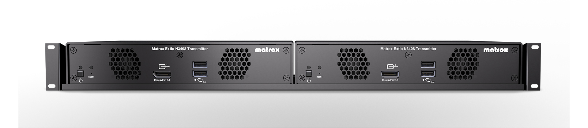 Matrox® Extio N3408 IP KVM extenders deliver 4K/UHD performance or quad-monitor capabilities over standard Gigabit Ethernet at ultra-low bitrates. Easy to set up, Extio N3408 can be configured as a point-to-point or networked KVM extender to deliver multiple video, keyboard, mouse, USB 2.0, and audio signals using a single fiber optic or copper cable. Aggregated and seamless control of multiple systems from a remote display station with a single keyboard and mouse set leads to efficient operations and increased productivity. TAA compliant SKU available.